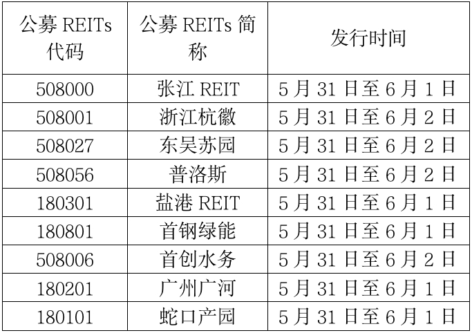 首批公募REITs的上市时间还有待基金公司进一步公告确定。