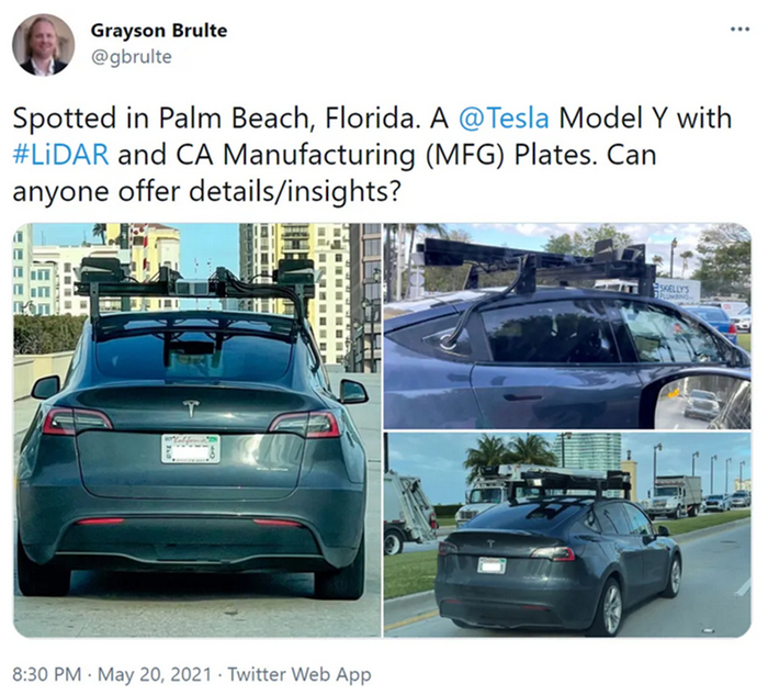 当然,也有人结合特斯拉与激光雷达技术公司Luminar签订了一份使用激光雷达进行测试和开发的合同的消息,以及前段时间推特上曝出的特斯拉给Model Y安装激光雷达的照片,猜测马斯克可能会“打脸”,特斯拉可能会在未来转向激光雷达路线。