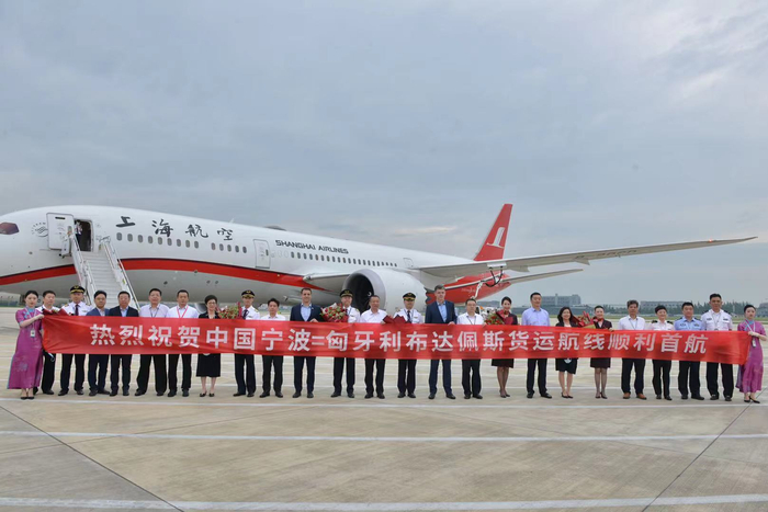 5月26日07:00,宁波-布达佩斯往返国际货运航班首航仪式在宁波栎社国际机场举行,在宁波市委市政府、匈牙利驻上海领事馆、宁波临空经济示范区管委会、东航物流、东航浙江分公司、宁波机场集团、宁波机场海关、边防等单位领导嘉宾的共同见证下,直达航班载着25吨近140立方米的出口货物于08时55分起飞,预计经过11小时20分钟的长途飞行后到达匈牙利的布达佩斯。