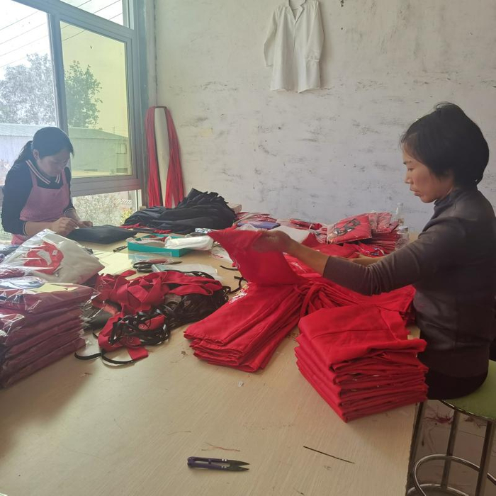 默契也并不是一朝一夕养成的。村里各家开始做网店卖演出服的头两年里,各家的生产状况还有些“神秘色彩”,比如一家生产了一种紧俏货,都不敢直接往外抱,就怕别家也来拿货。