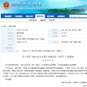 5月31日,南京市公安局官网发布关于印发《南京市人才落户实施办法(暂行)》的通知,