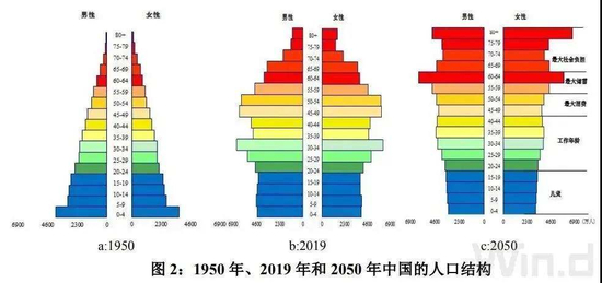 同时老年人占比继续增加,少儿和劳动人口占比继续减少,长方形的顶端进一步变宽,底部进一步变窄,人口结构将变为倒金字塔形,预计 2050 年,我国老年人口占 26.1%,劳动人口占 59.8%,少儿人口占 14.1%。