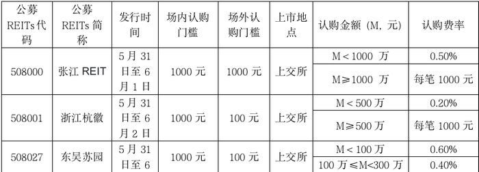 再有,首批9只公募REITs的场内及场外的认购费率及最低认购门槛存在区别,场外认购最低门槛在100元—1000元之间,上交所上市的几只公募REITs场内最低认购门槛是1000元,而深交所上市的公募REITs场内最低认购门槛是1000份,以蛇口产园为例,每份认购价格2.31元,1000份至少需要2310元。