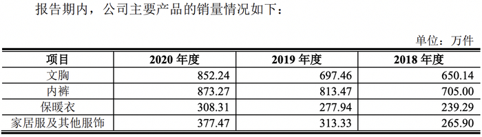 值得注意的是,在2020年,文胸产品总收入同比下降2.5%,内裤产品营收也同步下滑。