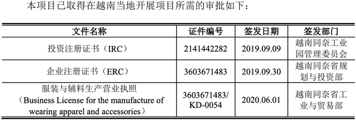 “爱慕越南将在疫情影响消除后,根据越南当地的法律法规申请上述批准文件。根据《爱慕越南法律意见书》,公司申请上述批文不存在重大不确定性。”招股书中称。