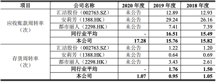 另外,爱慕股份应收账款周转率、存货周转率均处于同行业正常水平。