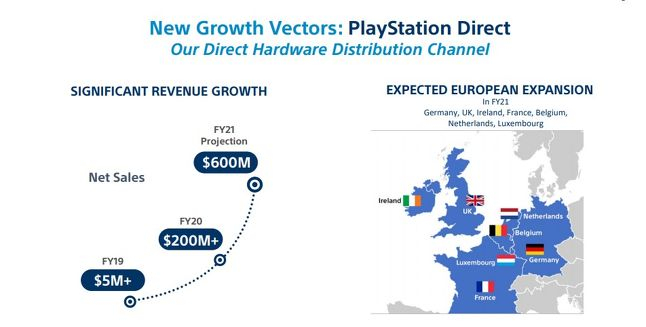 PlayStation Direct商店是另一个增长领域,索尼将其称为公司“直接的硬件分销渠道”。上个财年,PlayStation Direct的净销售额超过了2亿美元,而索尼预计其本财年净销售额将达到该项数据的三倍。目前PlayStation Direct只在美国提供服务,不过索尼计划在未来12个月内面向英国、法国、德国、荷兰、卢森堡、爱尔兰和比利时等欧洲多个国家推出。