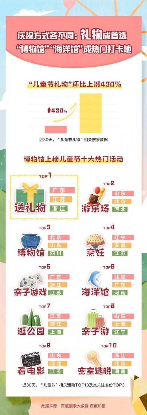 原标题:百度搜索大数据:“儿童节礼物”搜索激增四倍,游乐场与博物馆关注度高