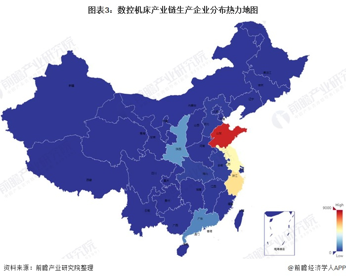 数控机床产业链区域热力图:山东企业密度最高