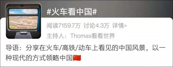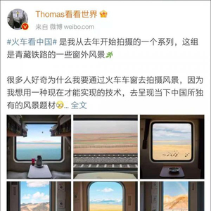 “火车看中国”这个系列,我在微博上创建了话题标签,大家都可以长期在上面投稿。中国铁路是有这么多这么长,人民群众的力量是无穷的,我发现微博评论区下面很多人分享的图片是非常精彩的,比如说有网友分享的厦门、威海等城市的一些公交车或者地铁,车厢外面就是这个大海。其实国内也有非常多这样的景点,无论你坐地铁还是坐火车,甚至坐飞机,你看到一些窗外好看的风景,你都可以拍下来,去投稿到这个标签里面,我也会定期的整理。