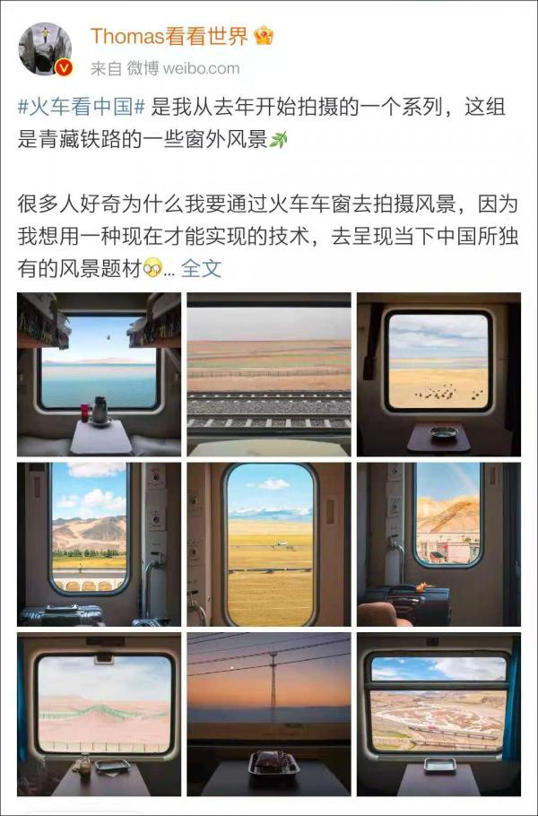 5月27日,微博博主@Thomas看看世界 一组通过火车车窗拍摄青藏铁路沿线风景的绝美图片,惊艳了一众网友。