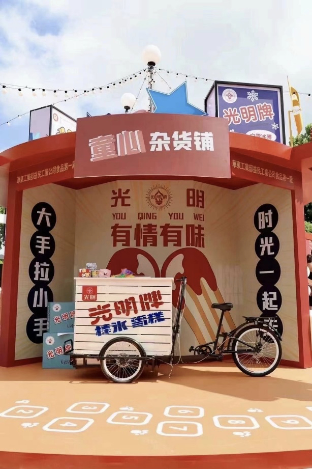 70年前燃起的火炬旁,始终有不熄的少年热血,光明冷饮承载着一代又一代消费者的甜蜜回忆和童年记忆。6月1日,“六一”儿童节当天,甜蜜回忆重“燃”申城。在上海外滩旅游综合服务中心下沉式广场,为期一个月的“光明牌70年时光记忆”主题快闪店内,小卖部、杂货铺、宣传车等齐亮相,时代之光一一投射在触手可及的装置艺术上。不仅如此,光明冷饮也在现场精心设计游戏环节,意在强化和消费者的情感连接。大手牵小手,回忆皆在口。全场冷饮买二送一,到场的家长给孩子分享自己的儿时回忆,将童年的记忆一代代传承。同时,线上也将同步开启隐藏玩法,1951年出生,6月1日出生,或名字中带有“光明”的朋友,皆可前往快闪店共同参与庆生,并有机会获得由光明冷饮所提供的庆生豪礼。