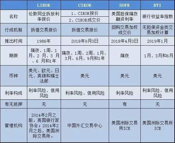 各价格基准特点比较(参考来源:建行金融市场部)