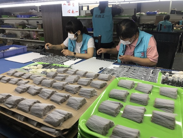 5月19日,工人在河南鹿邑一家化妆刷企业生产车间忙碌。记者 张兴军 摄