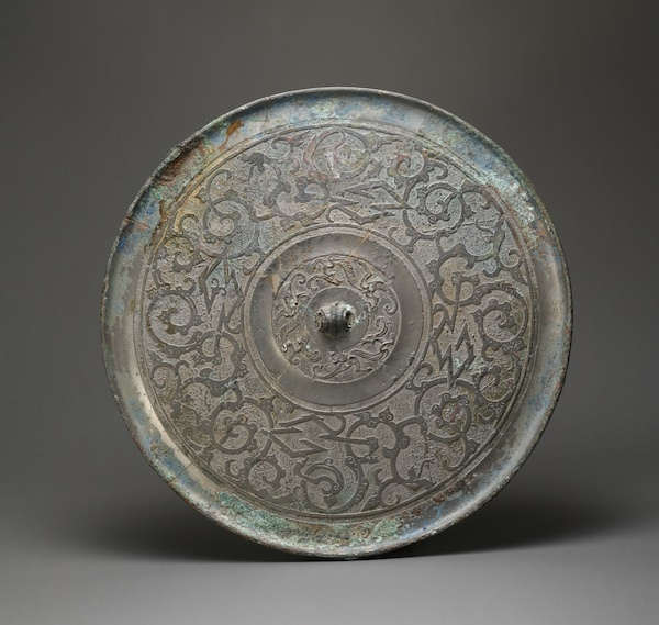 然而,在整个铜镜发展的历史长河中,铜镜的功能又并不止照容这么简单。中国古代铜镜最早发现于齐家文化,到商代晚期已基本成型。战国时期铜镜种类已相当丰富,汉代、唐代是铜镜发展的两个高峰,宋元时期转型,明清逐渐衰落。铜镜文化四千年,今天,当我们回溯铜镜在历史长河中留下的些许痕迹,不难发现,在过去人们的物质和精神生活中都无处不见铜镜的影子:做人体、车辇、宫殿的配饰,用于婚俗嫁娶以求吉利、以及作为佛教、道教之法器,不一而足。