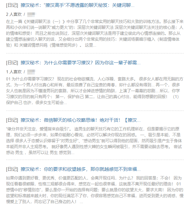 现在依然能搜索到少部分关于撩汉秘术的帖子,几乎都是教人如何利用技巧达到社交目的