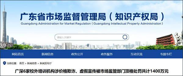 卓越、明师等广深6家校外培训机构涉价格欺诈、虚假宣传被罚1400万元