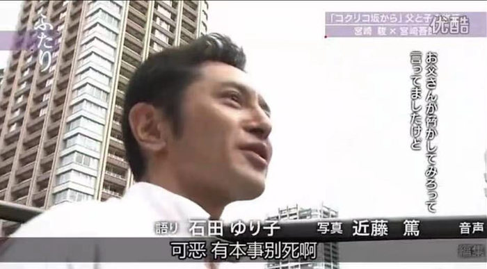 和《地海战记》首映礼后板着的脸不同,《虞美人盛开的山坡》首映礼后的宫崎骏笑了起来。记者问他,“有什么想对儿子说的吗?”“还是稍微给我点压力嘛。”得知这个回答的吾朗也笑了,“可恶,有本事别死啊。”