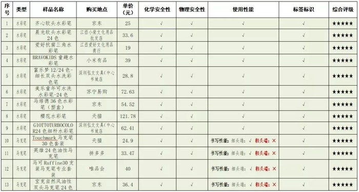 2020年9月,江西省消费者权益保护委员会联合深圳市消费者委员会、福田区消费者委员会、宝安区消费者委员会公布了对25款市售水彩笔、马克笔的比较试验结果。