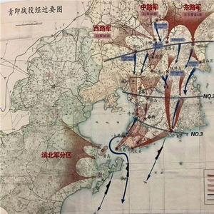 △1949年5月3日,人民解放军兵分三路,发起青即战役。图为青即战役经过要图。