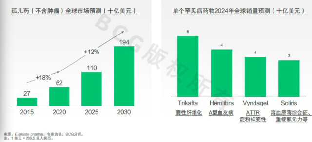 BCG的研究称,孤儿药市场规模可观,2020年全球市场规模达620亿美元,自2015年以来的5年,年均增速为18%。预计2025年达到1100亿美元。