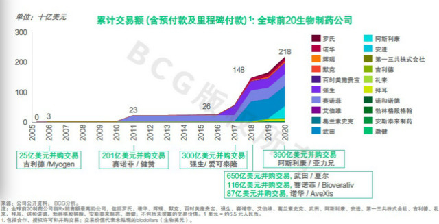 BCG数据显示,2020年全球前20的生物制药公司在罕见病领域的累计交易额达2180亿美元。