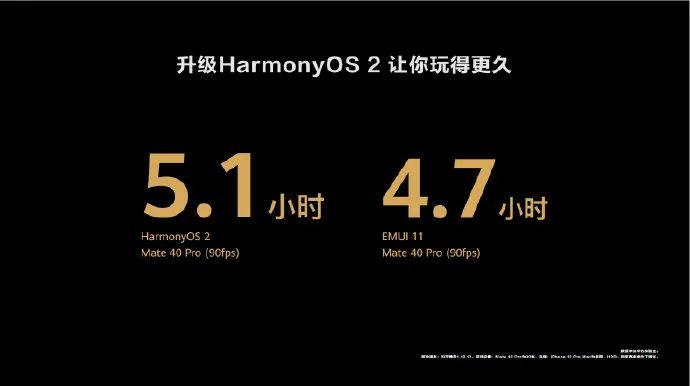 华为表示,Harmony OS 2 的图形栈技术让游戏玩得更久。