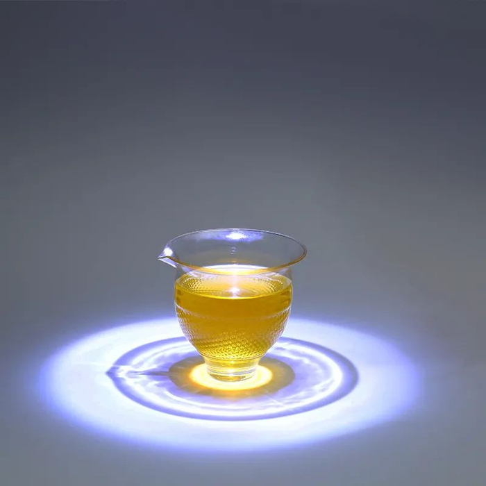 同时,公道杯底部辅以金底,茶汤倒入后,晶莹剔透,光影流变,赏心悦目。品茶不再只是喝茶,而是如古人一般,强调对茶汤本身的视觉鉴赏,别有一种品茶的妙趣。