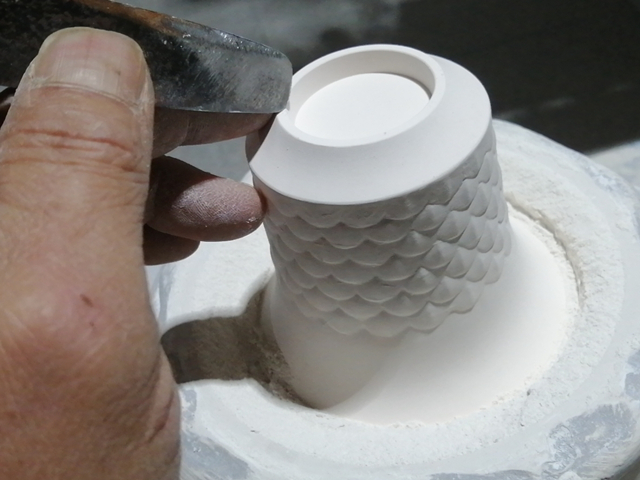 单就雕塑这一道工序,手上功夫必须分毫不差,才有茶侣的光影魅力。