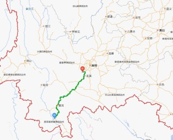 从云南全省来看,“断鼻家族”从野象谷到昆明市晋宁区的路线图,全程超450公里 高德地图