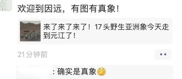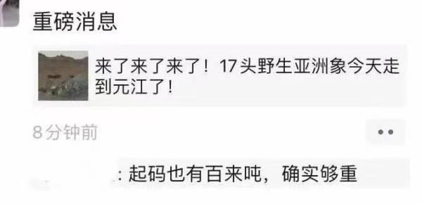 4月16日,“断鼻家族”走入距离通关镇100多公里的元江县。同样,这也是有监测数据以来野象群首次进入元江县境内。这次事件在当地人的“朋友圈”内,引起不小的轰动。有人开玩笑说,“有图有‘真象’”,还有人感慨,“这是真正的‘重磅消息’”。