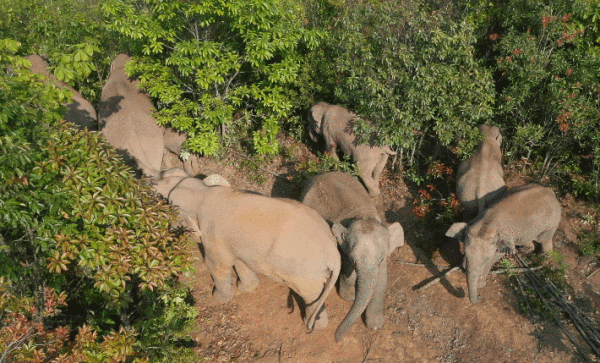 一路上,这群野象经历过新生——去年12月,一头象宝宝出生,断鼻家族成员增加到17头。它们也经历过离别——今年4月,两头野象离队,剩下15头继续往北。