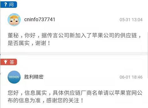 就在前几日,苹果公司在其官方网站公布最新《2021年度供应商责任进展报告》,2020年有12家中国大陆公司新进入苹果供应商名录,其中就包括胜利精密。在深交所互动易平台上,胜利精密也回应投资者公司新加入苹果供应链的消息属实。