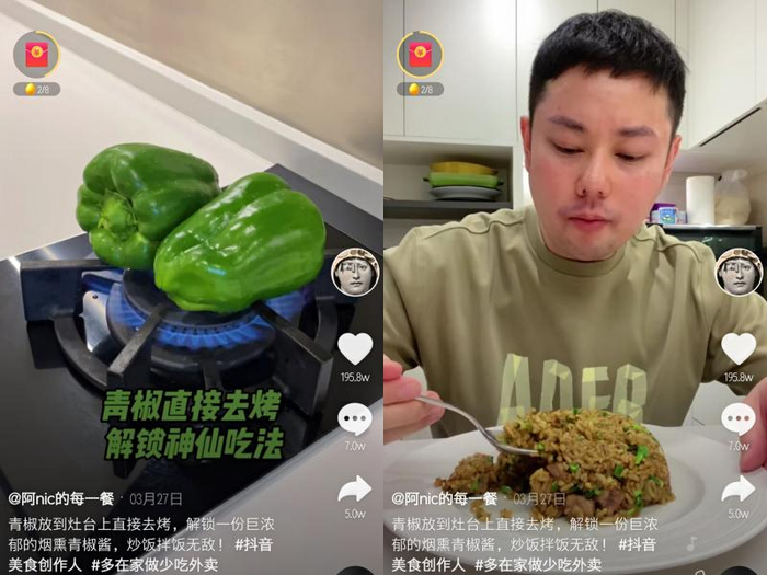 正如美食主播“阿nic的每一餐”,粉丝规模与头部主播相比还差好大一截,但抖音上有600万人认真诚恳地追随阿nic好好做饭。