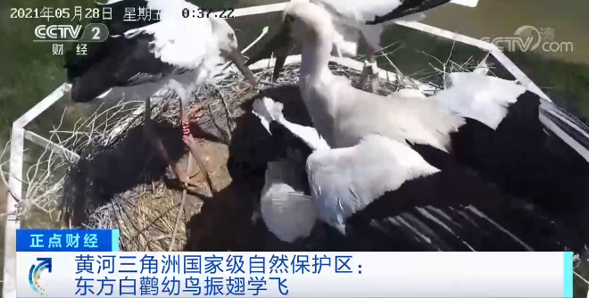 央视网消息:东方白鹳是我国一级保护动物,世界濒危鸟类。眼下,在我国最大的东方白鹳繁殖地——黄河三角洲国家级自然保护区里,东方白鹳幼鸟羽翼渐渐丰满,它们开始学习飞翔。