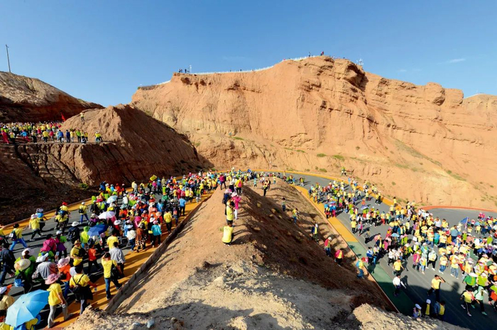 黄河石林百公里越野赛,由白银市委、市政府主办。白银位于甘肃中部,也被称作“铜城”。改革开放初期,白银的铜产量占据着全国铜产量的一半。到2008年,白银市却成了全国首批典型资源枯竭转型城市。近年来,为寻求转型,白银市明确提出,推动大景区建设成为地方旅游业快速发展的新增长极。