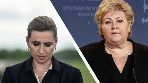 丹麦首相弗雷泽里克森(左)挪威首相索尔贝格(右)