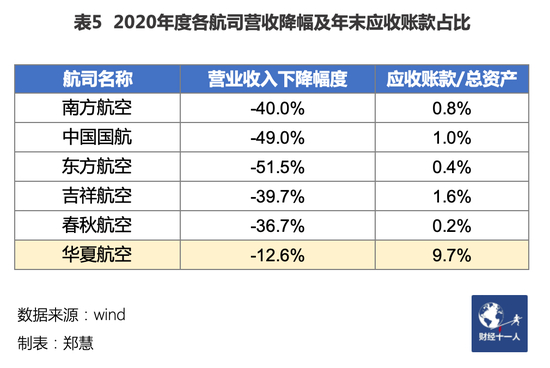 但也正因营收过于依赖机构客户,华夏航空的应收账款,占总资产的比例高达9.73%。在应收账款极少的航空业中,是个“异数”(见表5)。