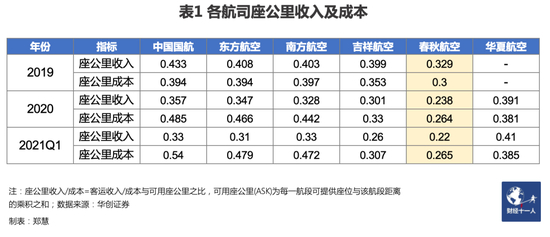 2020年,华夏航空(002928.SZ)实现了6.13亿元的盈利;春秋航空(601021.SH)净亏损5.91亿元,但若扣除对“春秋航空日本”的投资亏损及计提减值影响后,自身航空业务盈利约1.4亿元。