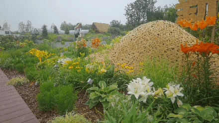 “新优品种园”的主题是“当花园来敲门”,展示了来自15个国家、80多家育种商的500多个新优品种,涵盖乔灌木、球宿根、藤本植物、室内植物、花坛花等。有月季、绣球、凤仙、朱顶红、百合、百子莲等。