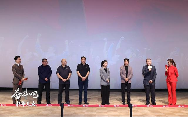 中央新影集团党委书记、董事长姜海清代表出品方致辞,她说,四十多年前,中央新闻纪录电影制片厂与八一电影制片厂和北京电影制片厂联合摄制出品了新中国成立后第一部全面反映中国革命历史的大型音乐舞蹈史诗电影《东方红》,其恢宏壮美的表演场面,丰富多彩的艺术形式,在新中国文艺史上写下了辉煌的一页,成为一代中国人的集体记忆。今天,在即将迎来中国共产党建党百年之际,中央新影集团隆重推出精心制作、以歌舞形式反映中国共产党百年征程的舞台艺术电影《奋斗吧中华儿女》,是党员干部、普通群众和青少年形象化、艺术化学习百年党史的生动教材。