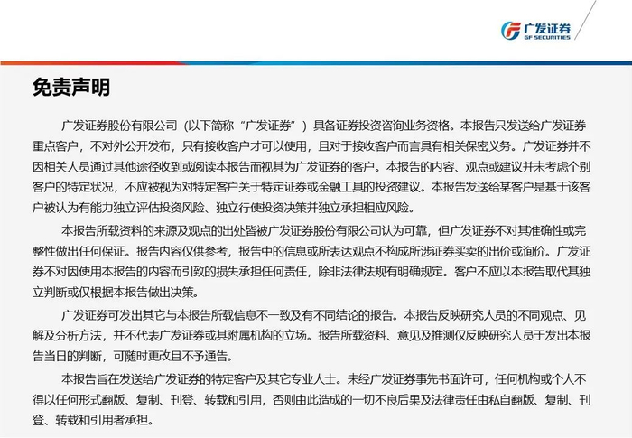 完整的投资观点应以广发证券研究所发布的完整报告为准。完整报告所载资料的来源及观点的出处皆被广发证券认为可靠,但广发证券不对其准确性或完整性做出任何保证,报告内容亦仅供参考。