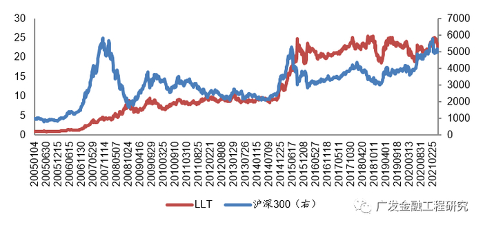 GFTD、LLT在沪深300指数上多空择时交易累计收益看,扣费后净值整体仍呈向上态势。