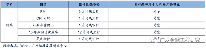 宏观因子的变化体现了经济在周期内的变动,所以股市、债市、大宗商品的变化趋势与宏观因子的变化趋势密切相关。在宏观因子的选择上,我们从多个角度来考虑,对市场影响比较大的宏观因子主要包括货币政策、财政政策、流动性、通胀水平以及其他经济指标。
