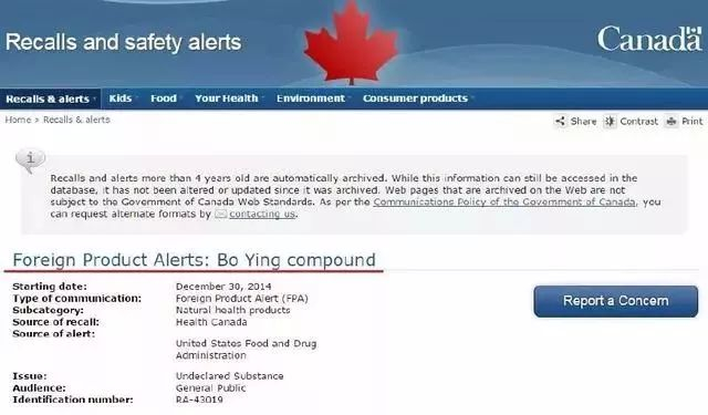 2015年2月,加拿大联邦卫生部发表“国外产品警告”,忠告国民“切勿在没有医护人员的专业建议下,服用保婴丹。”