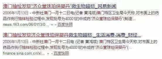 2006 年,澳门抽检发现“保婴丹”微生物超标。