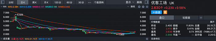 2020年11月优客工场登陆资本市场之后,其上市平台优客国际有限公司(股票代码:UK)股价破发并开始一路下行,市值也大幅缩水。截止北京时间2021年6月4日上午10时,优客工场每股报2.630美元/股,市值仅剩下2.25亿美元,相较上市之初的7.69亿美元,缩水超三分之二。
