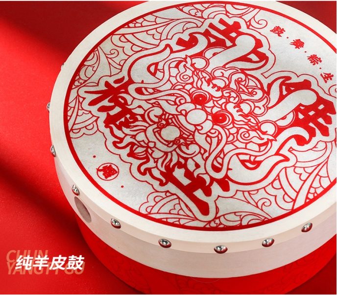 鼓在古代被称为通天神器,有敬神、驱邪、求福之用处,以纯羊皮制成的鼓为盒盖,敲锣打鼓驱邪祈福,愿万物欣欣向荣、诸事顺遂也愿我辈团结奋进,继续努力。