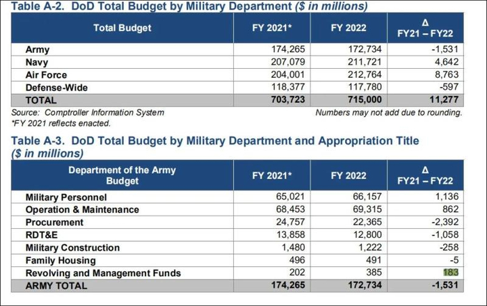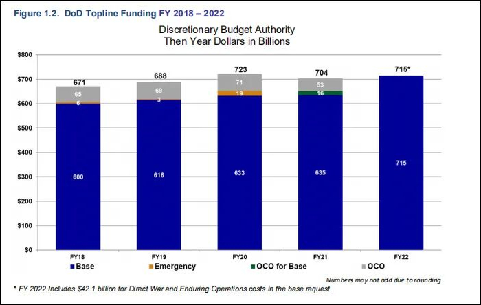 本周最大的军事新闻,无疑是全球军费支出最庞大的国家——美国——公布了其2022年的国防预算。2021年5月28日,拜登政府向美国国会提交了2022财年联邦政府预算要求详目,其中美国国防部申请预算总额为7150亿。这一数字虽然比2021年预算7040亿预算高110亿美元,增幅达1.1%,但比2020年的7230亿美元要低。