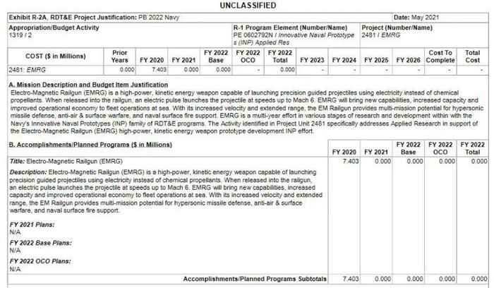 除了这些高级武器的投资以外,一些华而不实的武器,比如电磁炮和美国陆军1000英里超级大加农也被砍掉了研制经费,其中电磁炮的经费更是被砍到了0。